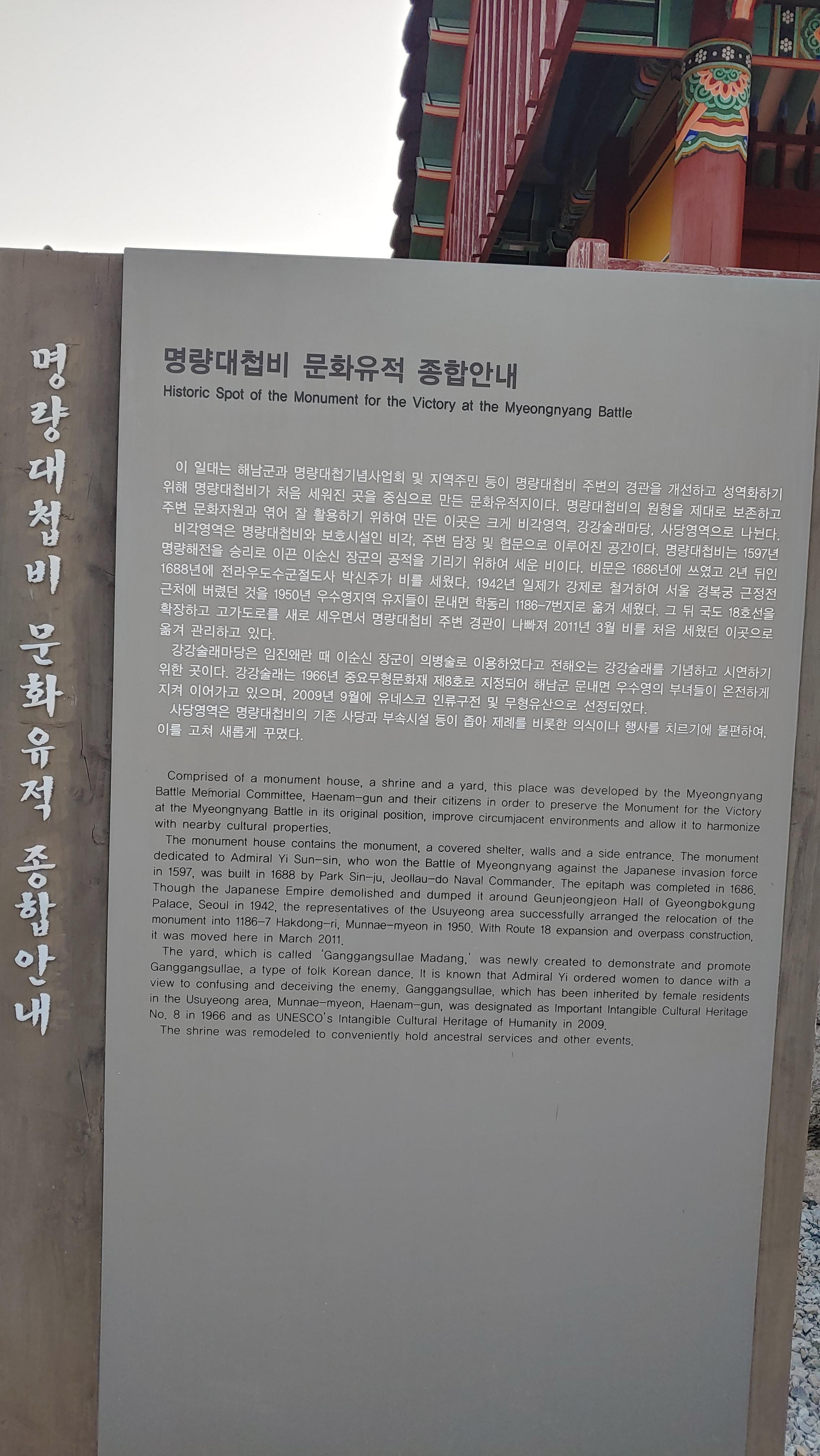 문내면의 명랑 대첩비와 충무사에 왔다.