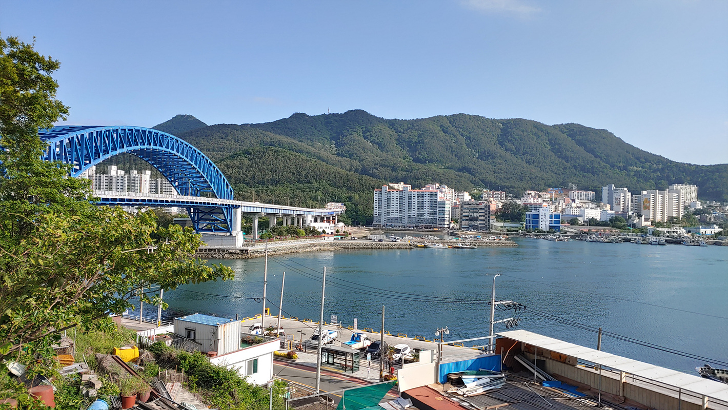다른 다리 충무교가 보인다 저 건너편에 해저 터널이 있다.