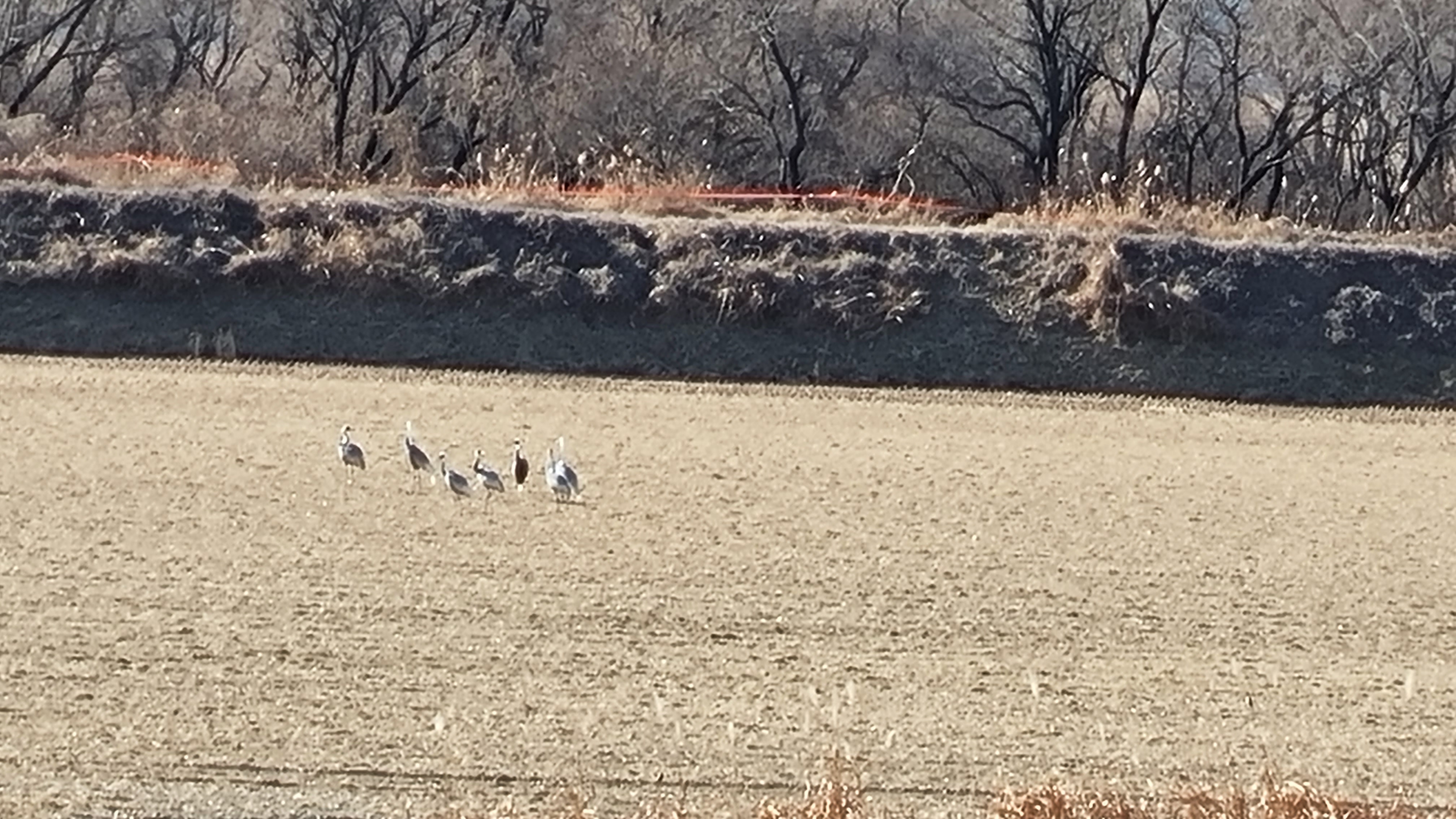 재두루미는 단 12명의 사람이 지나가는데도 먹이 활동을 하지 않고, 경계한다.