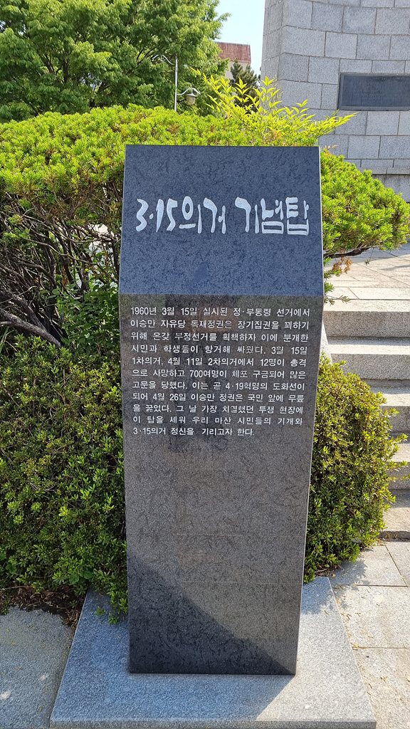 의거 기념비가 빤히 보이는 곳에.... 씁쓸하다. 이것이 마산 3.15 의거 정신의 현주소인가?