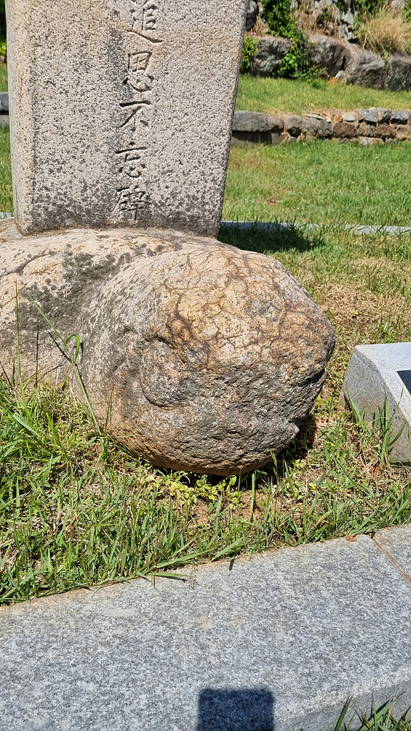 비석의 머리에는 기와 지붕이 아니라.