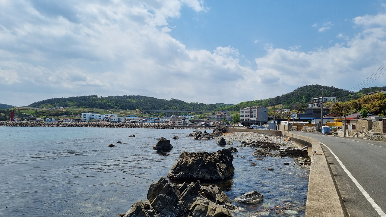 대동배 1리 까지 해변은 서해안으로 내리막 길이다.