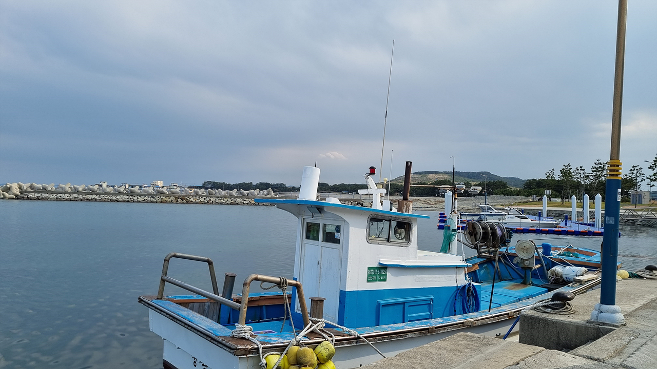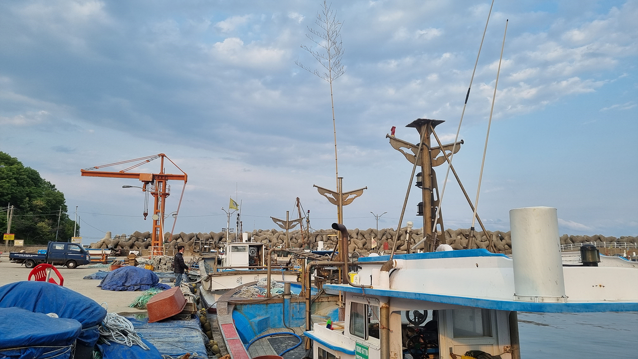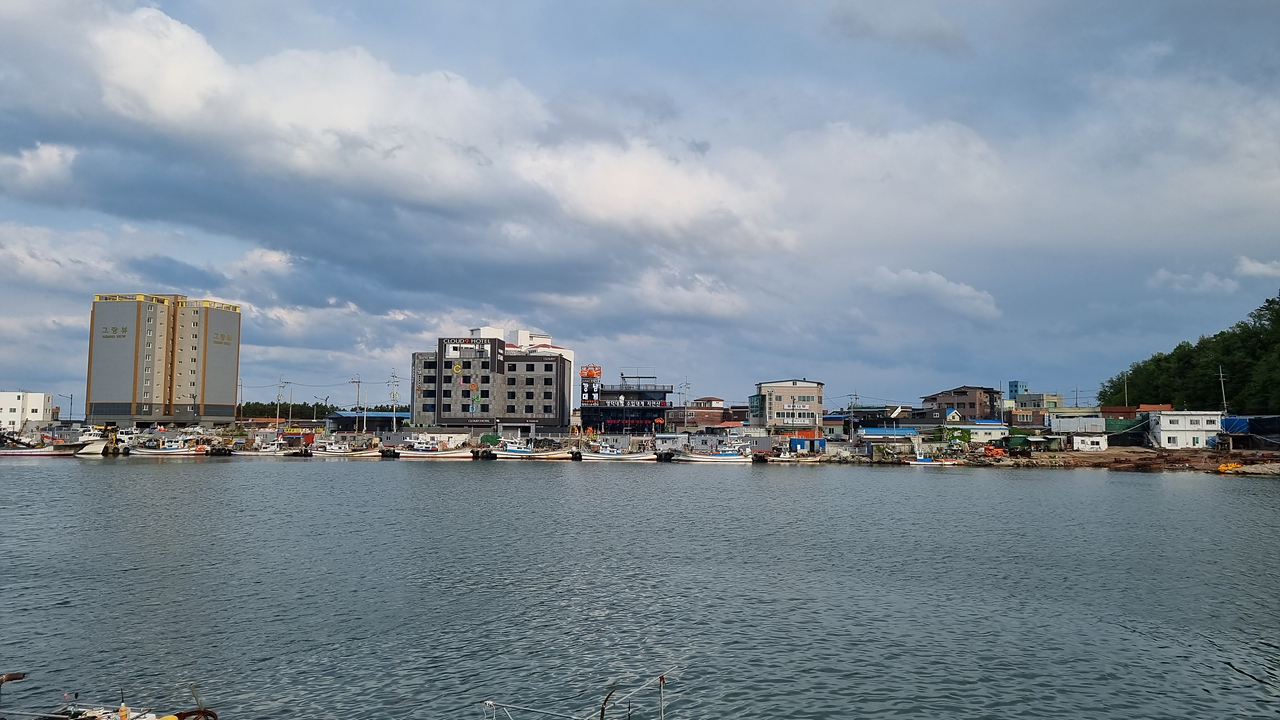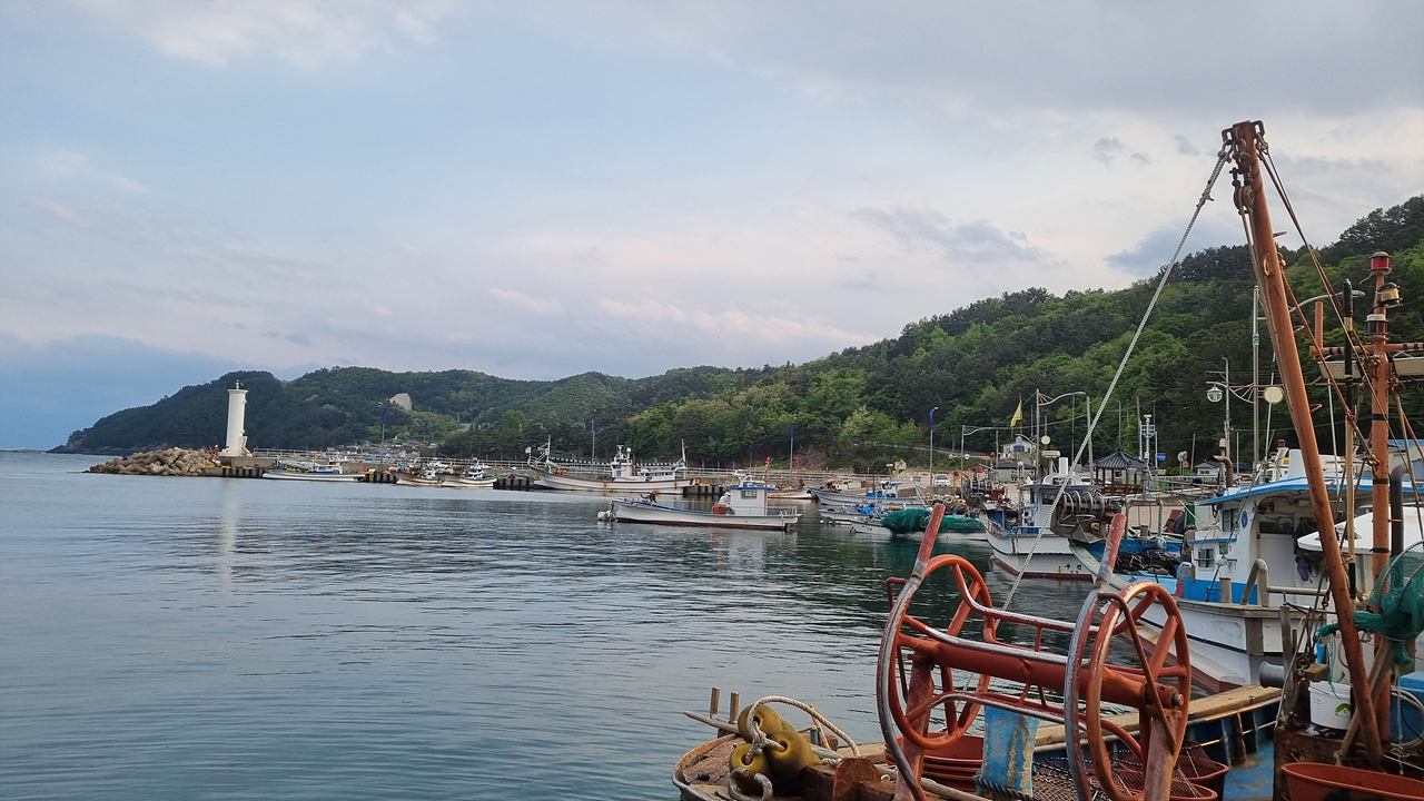 노물항을 지나서 만나는 경정항은 항구와 해변이 같이 있다.