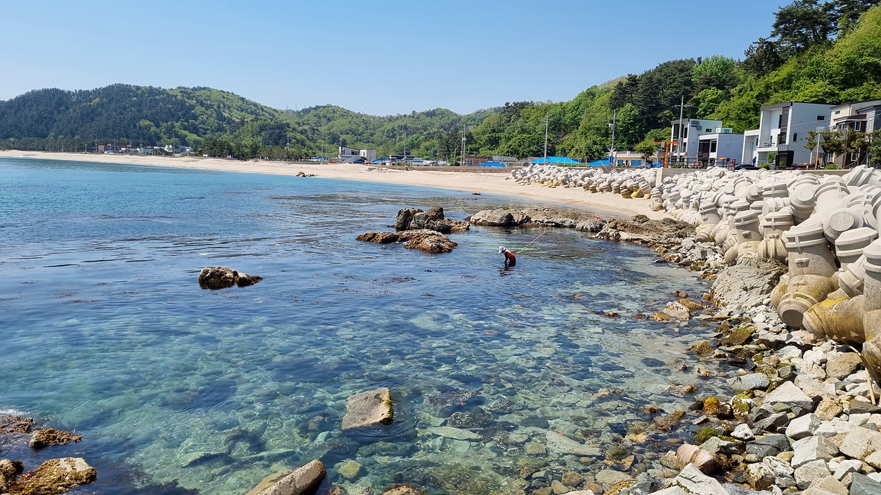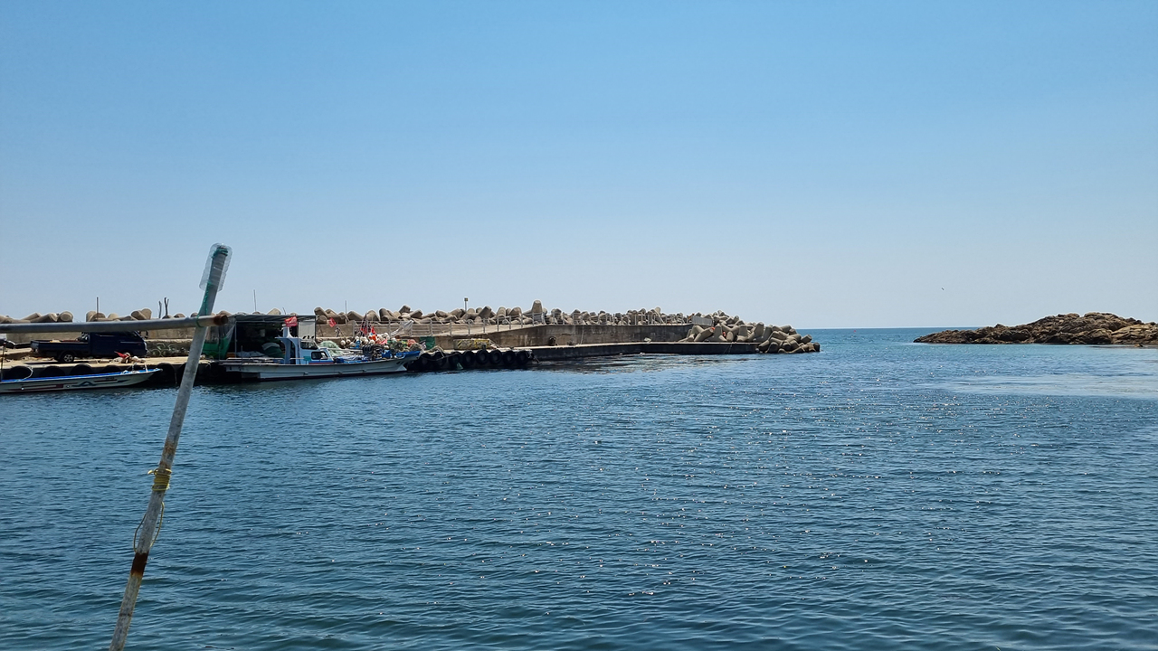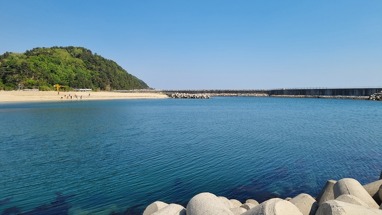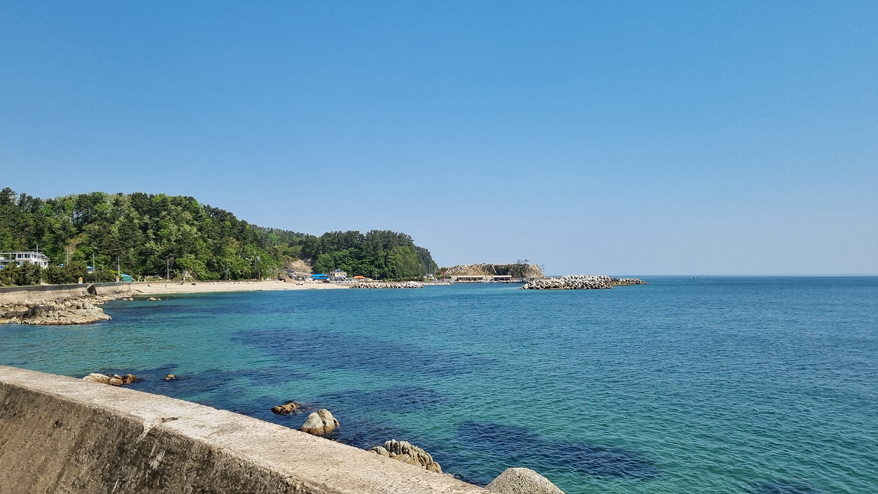 잔잔한 해변을 따라 올라간면 기성항이 보인다