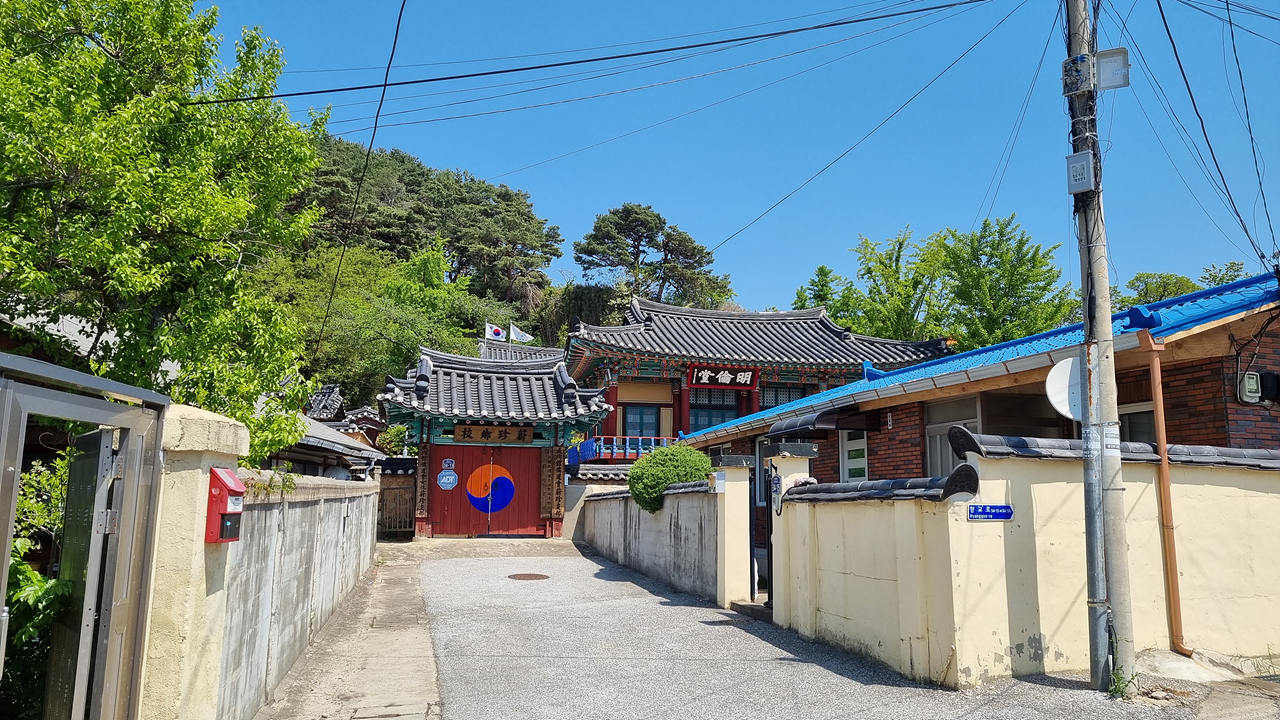 남대천 중간에 울진 읍내가 있다. 읍내 남대천 중간에 울진향교가 있다.